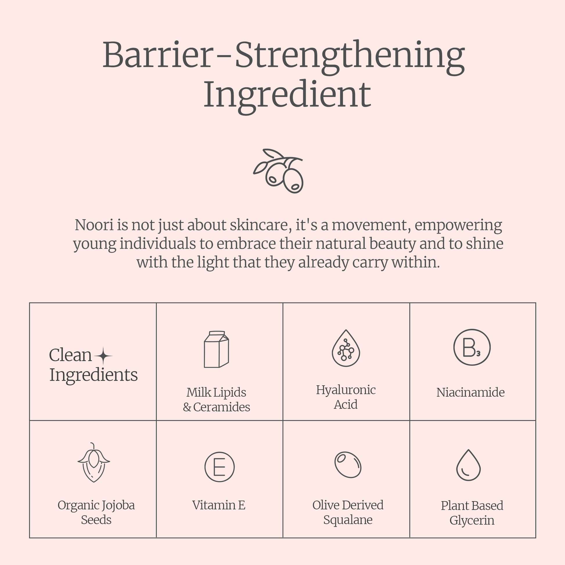 Noori Girl & Goat Moisturizer is more than hydration—it’s science-driven skincare created exclusively for teens, with every formula focused on strengthening and protecting the skin barrier for lasting skin health.